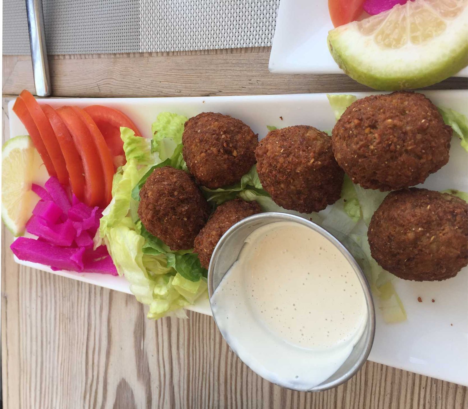 Dia (zero) da chegada, após descanso, ficamos em Beirute para conhecer a cidade. Andar pelos arredores e dar de cara com o Mar Mediterrâneo e restaurantes de frente para o mar com comidas (claro) maravilhosas! Primeiro dia comemos Falafel e estava divino.